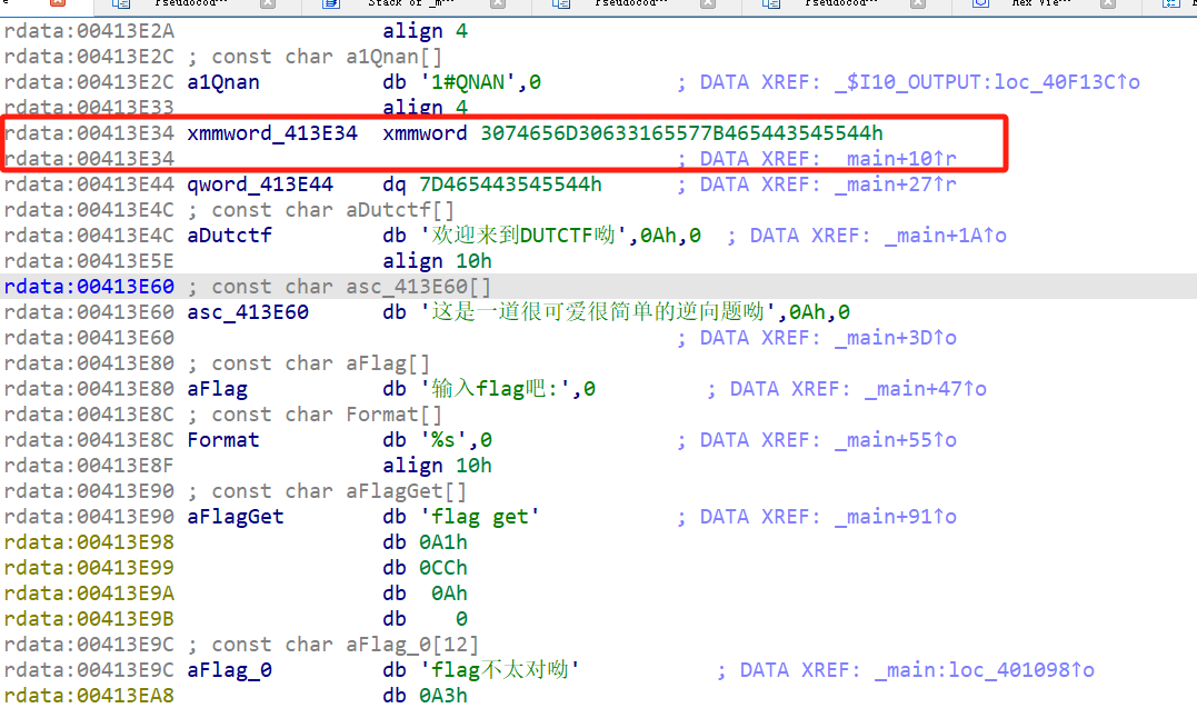 xmmword_413E34  xmmword 3074656D30633165577B465443545544h